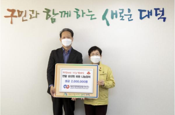 기탁된 성금은 사회복지공동모금회 ‘희망2021 나눔캠페인’ 대덕구 성금으로 기탁돼 2021년 긴급지원사업비(생계비, 의료비 등)로 사용될 예정이다.