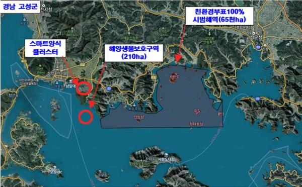 전국 최초로 고성군 자란만 해역이 거제시 거제만 해역과 함께 친환경부표 100% 보급 시범해역으로 지정됨에 따라 총사업비 250억 원을 투입하여 고성군 자란만 해역에 있는 모든 양식장에 사용하는 스티로폼 부표를 친환경 부표로 교체하게 된다.