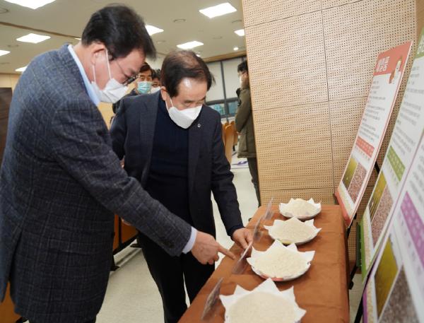 이 날 제시된 품종은 진천 지역에 대한 재배적응성이 좋을 것으로 분석한 △알찬미 △진수미 △청품 △미호 △삼광1호 △새일품 등 국내육성 신품종 6종이다.