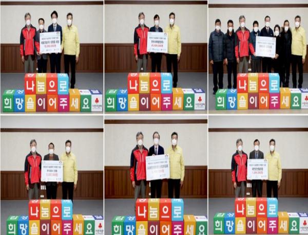 또한, ‘주식회가 경동’이 500만 원, ‘(사)태안선한이웃 소망감리교회’가 300만 원, ‘태안군산림조합(조합장 최우평)’이 100만 원을 기탁하며 지역 사랑의 마음을 전했다.