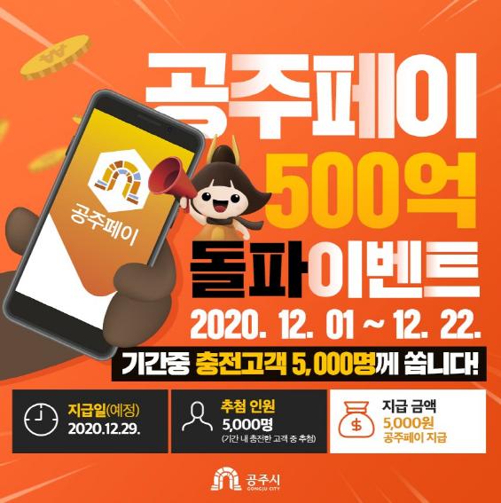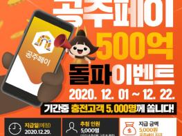 공주시가 충남 최초 모바일 상품권 ‘공주페이’의 발행액 500억 돌파를 기념해 새해맞이 이벤트를 실시한다고 17일 밝혔다.