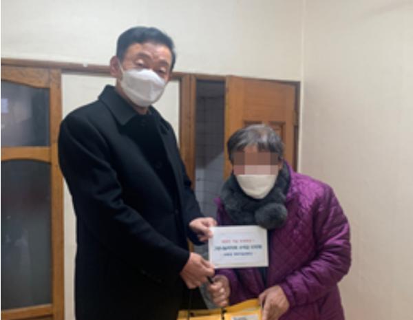 부산광역시 연제구 거제1동은 지난 15일 행복마을계획단 주관으로 연말연시를 맞이해 저소득 홀로 어르신 2세대에 성금 20만 원과 거제종합사회복지관에 의료, 신발 등 30만 원 상당의 물품을 전달했다.