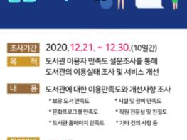 이번 설문조사는 도서관 홈페이지와 각 자료실에 비치된 설문지를 통해 참여할 수 있으며, △보유도서 만족도 △시설 및 장비 만족도 △문화프로그램 만족도 △직원 전문성 및 친절도 △도서관 홈페이지 만족도 △기타 건의사항 등 도서관 전반에 대해 설문이 이뤄진다.