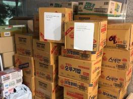 행정복지센터 앞에 가득 놓인 상자에는 후원자가 전달한 라면, 음료, 각종 반찬, 영양제 등 총 46세트의 부식과 생활용품 2세트 등이 손편지와 함께 놓여있었다. 손편지에는 어려운 이웃에게 따뜻한 나눔의 정이 가닿길 바라는 후원자의 마음이 담겼다.