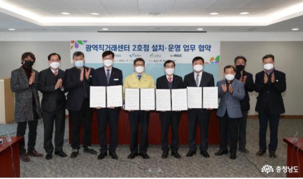 김용찬 도 행정부지사는 17일 도청에서 정낙춘 보령부시장, 최영규 금산부군수, 신원식 대전MBC 사장과 광역직거래센터 2호점 설치 운영 협약(MOU)을 체결했다.