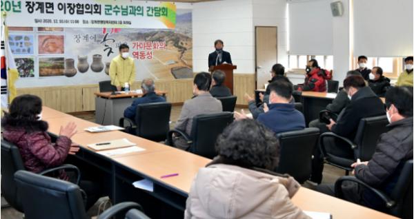 장계면 이장협의회(회장 신태영)는 12월 16일 장계면 행정복지센터 회의실에서 장영수 장수군수와의 간담회를 가졌다. 이번 행사에는 장계면 이장 31명이 참여하여 각 마을 현안 및 장계면의 발전을 위한 다양한 의견을 제시하였다.
