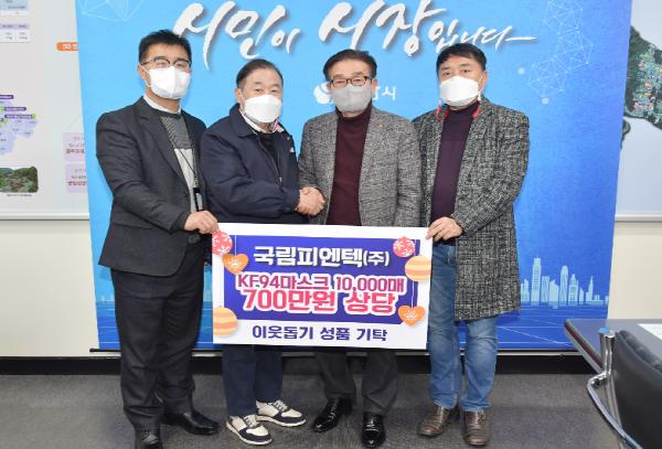 국림피엔텍(주)에서 지난 15일 양산시에 KF94 마스크 10,000매(700만원 상당)를 기탁했다. 이날 기탁식에는 노왕기 대표, 김대경 본부장, 허민 이사가 참여했다.