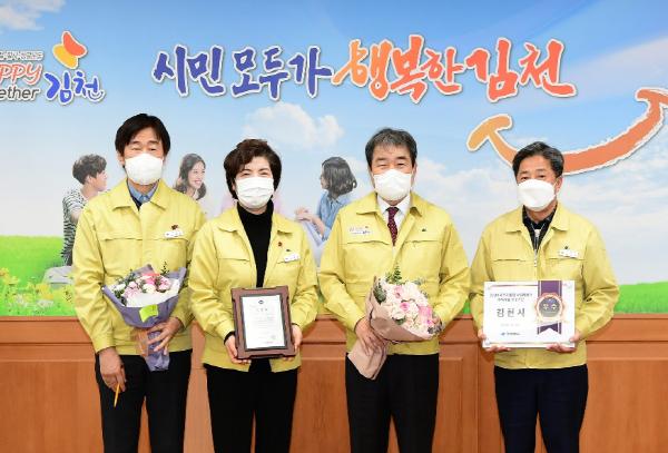 김천시는 지난 17일 경상북도에서 실시한 '2020년 지역사회서비스투자사업 시·군 성과평가'에서 우수기관으로 선정되어 표창패와 현판을 수상 했다. 이번 수상은 신규사업 발굴, 사회서비스 품질향상, 이용자 중심 강화, 지역 일자리 창출 등 체계적인 성과관리로 운영 전반에서 탁월한 평가를 받았다.