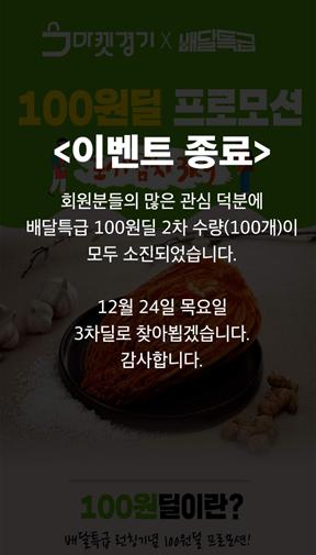 경기도주식회사는 17일 ‘배달특급’과 경기농식품유통진흥원의 ‘마켓경기’가 마련한 ‘배달특급X마켓경기 100원딜’이 지난 회차에 이어 개시 1분 만에 또 한번 조기 마감됐다고 밝혔다.