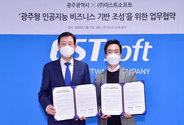 광주광역시는 17일 ㈜이스트소프트, ㈜영우디지탈과 각 회사 서울 본사에서 광주형 인공지능 비즈니스 기반 조성을 위한 61~62번째 업무협약을 체결하고 기업별 지역사무소, 연구소 및 교육장 설립을 통해 광주 인공지능 생태계 조성에 적극 협력키로 했다고 밝혔다.