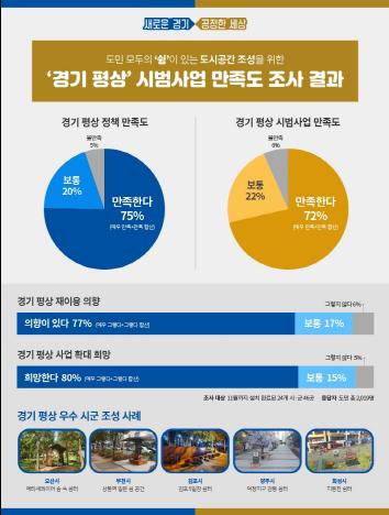이를 반영한 듯 재이용 의향 또한 77%로 나타났고, 쉼이 있는 도시공간, ‘경기 평상’ 사업이 보다 확대돼야 한다고 생각하는 도민은 80%에 달했다.