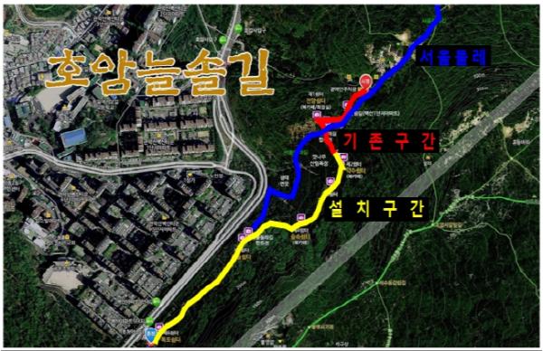 구는 앞서 주민들이 야간에도 안전하게 이용할 수 있도록 지난해 호암늘솔길 총 1.2km 중 300m 구간(호압사~잣나무산림욕장)에 야간조명을 시범 설치한 바 있다.