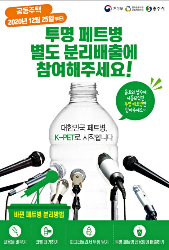 충주시는 오는 25일부터 공동주택에서 발생하는 투명 페트병을 전용 배출함에 분리 배출해야 한다고 밝혔다.