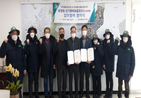 광주시 송정동 행정복지센터는 지난 17일 송정동 경기행복마을관리소와 주민생활 편의 증진과 취약계층 생활지원 등을 위한 업무 협업식을 개최했다.