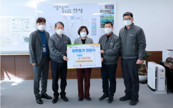 안성시는 17일 안성시 신건지동에 위치한 ㈜삼양컴텍에서 불우이웃돕기 성금500만원을 기탁했다고 밝혔다.