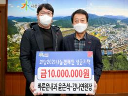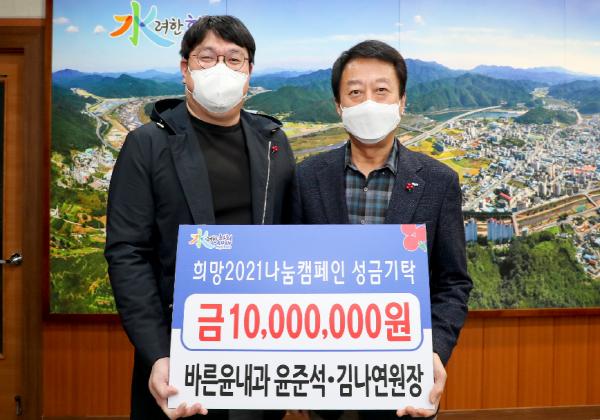 바른윤내과(원장 윤준석·김나연)는 17일 합천군청을 방문하여 이웃돕기 성금 1천만원을 기탁했다.