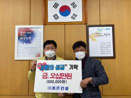 ㈜조은건설(대표 박경환)은 18일 부북면행정복지센터에 탑마트 상품권 50만원을 기탁했다.