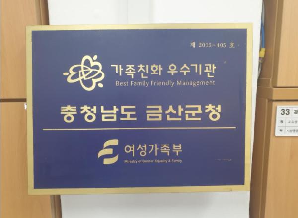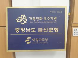 금산군이 여성가족부로부터 가족친화적 조직문화 만들기를 인정받아 가족친화 인증기관으로 재선정됐다.