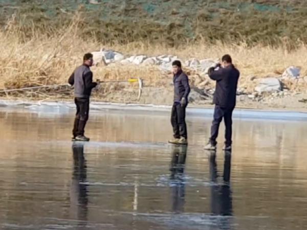산청군은 아침 최저 기온이 영하권 이하로 떨어지는 날이 계속되자 얼어붙은 산청 경호강 인근 주민들이 작살로 누치를 잡아 올리고 있어 눈길을 끈다고 밝혔다.