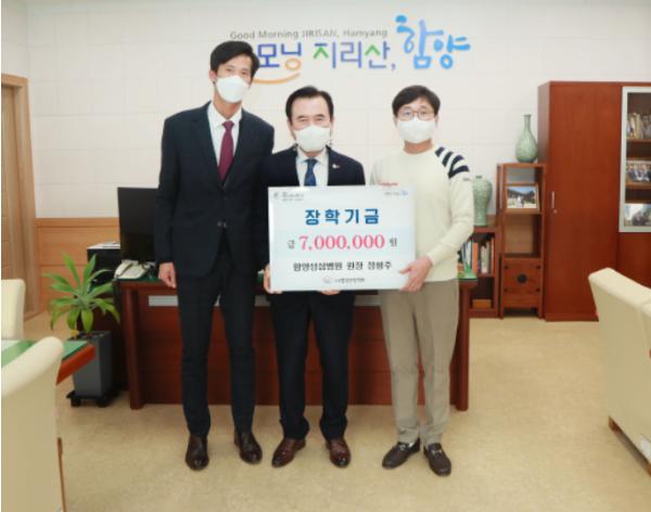함양군은 18일 함양성심병원에서 지역인재육성을 위한 장학금 700만원을 (사)함양군장학회에 기탁했다고 밝혔다.
