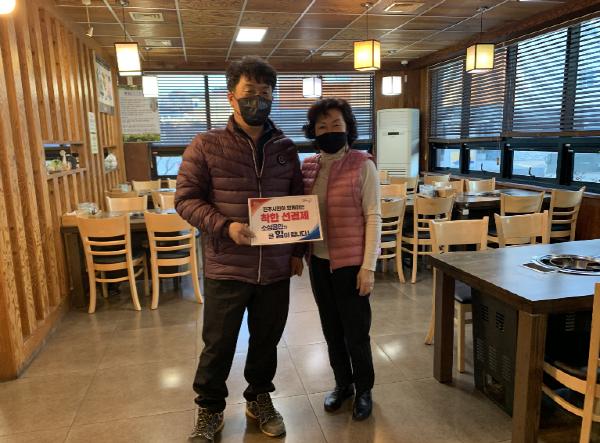 김차용 위원장은 지난 17일 정촌면에 소재한 한 식당을 찾아 식사 대금을 미리 지불하는 착한 선결제를 하고 지역의 다른 단체에도 이 캠페인을 홍보하고 독려했다.