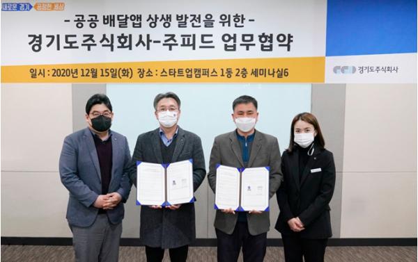 경기도주식회사는 공공배달앱 운영사인 ㈜에어뉴, 주피드와 차례대로 각각 지난 10일과 15일에 ‘공공배달앱 상생 발전’을 위한 업무협력을 맺었다고 18일 밝혔다.