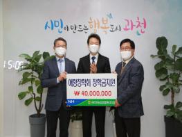 재단법인 과천시애향장학회(이사장 김강수)는 18일, 과천농업협동조합(조합장 이경수)으로부터 관내 인재육성을 위한 장학기금 4천만원을 기탁받았다.