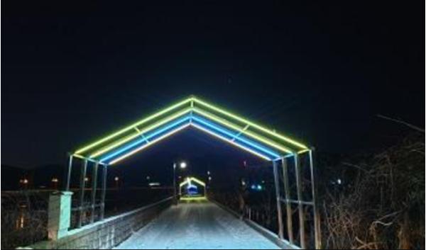 화강 산책로 울타리 3개소에 형형색색의 LED바를 설치하여 코로나 19로 지친 지역주민들에게 힐링의 공간으로 밤길을 밝혔다.