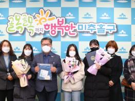 김정식 미추홀구청장은 우수 학교밖 청소년으로 선정된 3명의 청소년에게 표창장을 수여하고 격려했다.