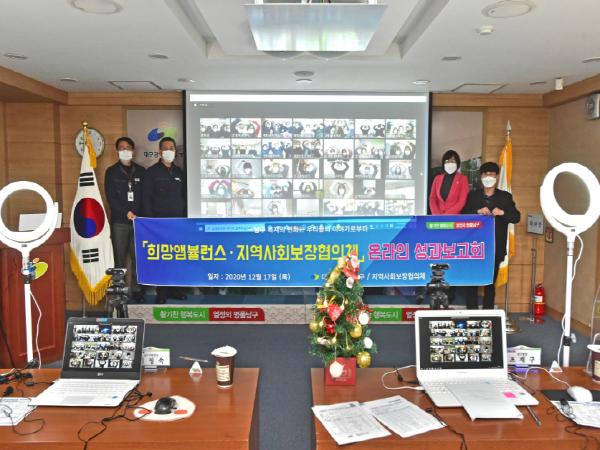 이번 보고회는 2020년도 남구지역사회보장협의체의 추진 성과를 공유하고, 지역복지 발전을 위해 힘쓴 유공자를 표창하는 자리로, 코로나19의 급격한 확산세로 인하여 온라인으로 개최하였다.
