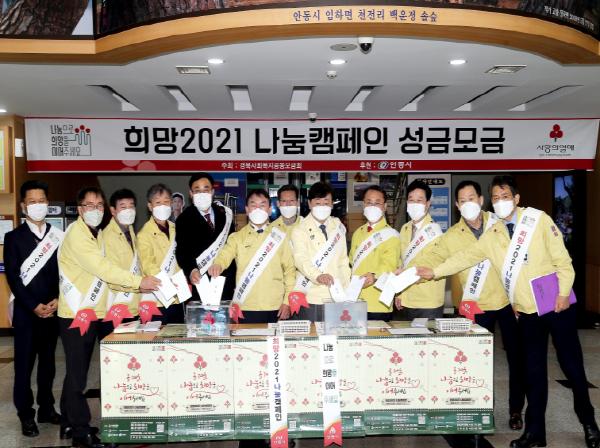 지속되는 코로나로 인한 경기 침체로 ‘희망2021 나눔 캠페인’참여 실적이 예년에 비해 저조할 것이라 예상되므로 공직자들이 모범을 보여야 한다는 일부 여론에 직원들이 솔선수범하여 동참하는 것으로 보인다.
