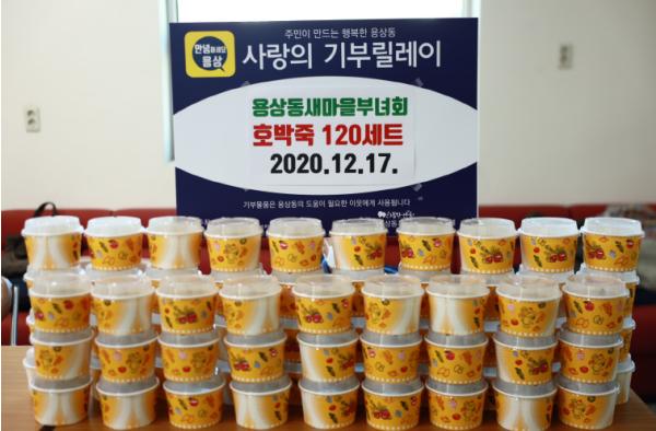홍영숙 부녀회장은 “매년 팥죽 행사를 해왔지만, 올해는 코로나로 지친 어두운 세상으로부터 호박색처럼 밝게 빛나는 희망을 전하고 싶어 호박죽을 준비했다”며 뜻깊은 메시지를 보냈다.
