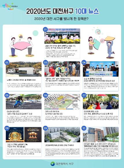 10대 뉴스는 2020년 한 해 동안 서구가 추진한 주요시책 및 역점사업 등 구정 전반에 걸쳐 크게 부각되어 보도된 뉴스 등을 대상으로, 직원 설문을 거쳐 최종 선정됐다.