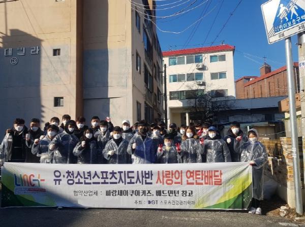 스포츠 건강관리학과 교수와 학생 27명은 복수동 연탄 사용 저소득 2가구에 연탄 1,000장을 직접 전달했다.