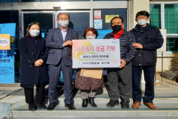 지리산참숯굴은 매년 어려운 이웃을 돕기 위해 백미 100포 가량을 지원해 왔다. 올해는 코로나19 확산 예방을 위해 성금으로 전달했다.