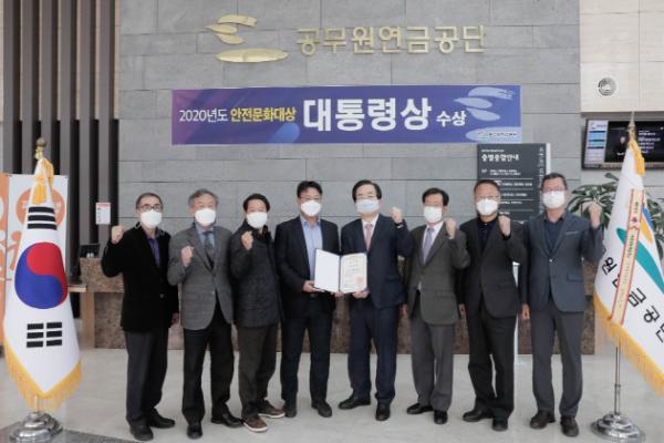 공무원연금공단(이사장 정남준)은 '2020년 안전문화대상 공모전’에서 공공기관부문 대통령 표창을 수상했다고 21일 밝혔다.