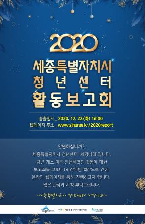 세종특별자치시 청년센터 세청나래가 오는 22일 '2020년 연간 청년센터 활동보고회’를 온라인으로 개최한다.
