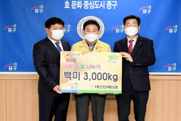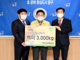 대전 중구는 21일 대전원예농협(조합장 김의영)에서 쌀 3,000kg(810만원 상당)을 기탁했다고 밝혔다.