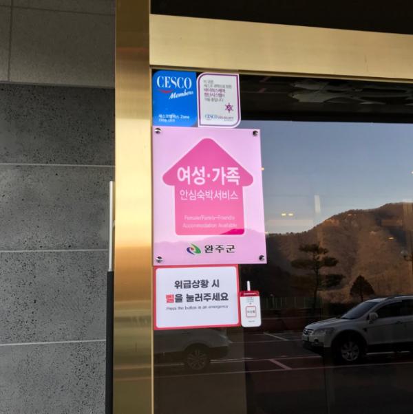 21일 완주군에 따르면 여성안심숙박서비스는 여성·가족단위이용객들이 안전하고 편안한 여행을 즐길 수 있는 숙박업소문화를 만들기 위한 방안으로 마련됐다.