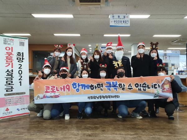 이 기간 동안 직원들은 산타 모자와 크리스마스 머리띠를 하고, 행정복지센터 입구에는 크리스마스 트리, 사랑 모금함 및 코로나19 극복 현수막을 설치하여 코로나19로 힘든 시기에 주민에게 희망과 사랑의 메시지를 전할 계획이다.