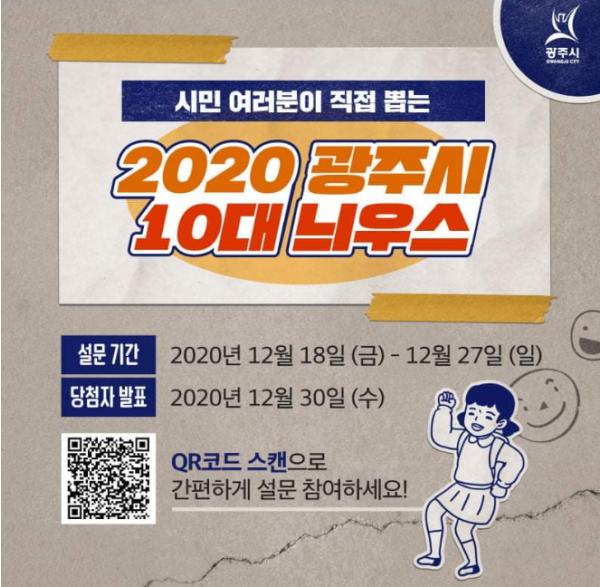 광주시는 오는 27일까지 올해 시와 관련된 정책이나 이슈 가운데 시민들이 가장 공감하고 화제가 됐던 10대 뉴스를 선정하기 위해 온라인 설문조사를 진행한다.