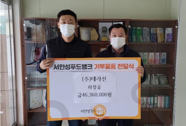 한편, ㈜테라선은 서안성농협 1층에 오프라인 매장이 위치하고 있으며, 2016년부터 5년간 서안성푸드뱅크에 1만4051개의 화장품(약 2억1500만원 상당)을 기부했다.