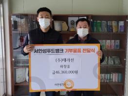 서안성푸드뱅크 박면호 대표는 “코로나19로 인해 국내경제가 침체되어 기부문화가 많이 위축된 한해였는데 이렇게 다양하고 좋은 제품을 기부해주셔서 지역 내 저소득 가정과 결혼이민자 가정에 아주 좋은 선물이 될 것 같다”며 “힘든 시기이지만 지난 5년간 ㈜테라선의 지속적인 기부활동이 귀감이 되어, 안성시 지역 내 많은 기업의 기부참여 활성화로 어려운 이웃이 따뜻한 겨울을 보낼 수 있으면 좋겠다”고 전했다.