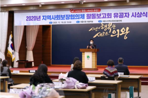 의왕시지역사회보장협의체는 18일 시청 대회의실에서 2020년 지역사회보장협의체 활동보고회 유공자 시상식을 개최했다.