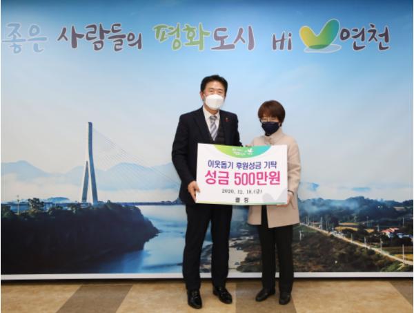 김광철 연천군수는 “지역사회 어려운 이웃을 위한 나눔실천으로 연말연시 훈훈한 사랑과 감동을 전해주고 계신 ㈜클링 이항아 대표께 진심으로 감사드리며, 기탁한 성금은 경기사회복지공동모금회를 통해 연천군 소외계층이 따뜻한 겨울을 날 수 있도록 잘 전달하겠다.”고 밝혔다.