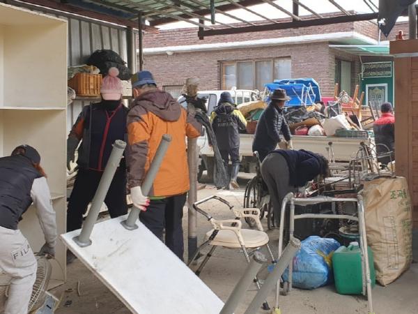 해당 가구의 집 안팎으로 생활집기류, 생활폐기물, 파지 등이 쌓여있어 혼자 남은 자녀들이 감당하지 못할 상황으로 이를 해결하기 위해 대합면 자원봉사협의회와 대합면사무소 직원들을 비롯한 지역주민들이 코로나19예방을 위해 최소 인원만 모여 이웃사랑을 나누었다.