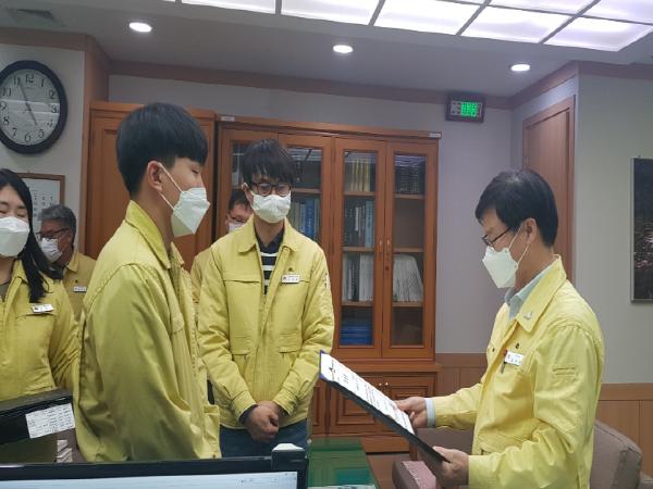 김천시는 2020년 민원처리 마일리지평가를 실시해 민원처리 단축에 기여한 우수공무원 7명을 12월 18일 부시장실에서 표창했다.