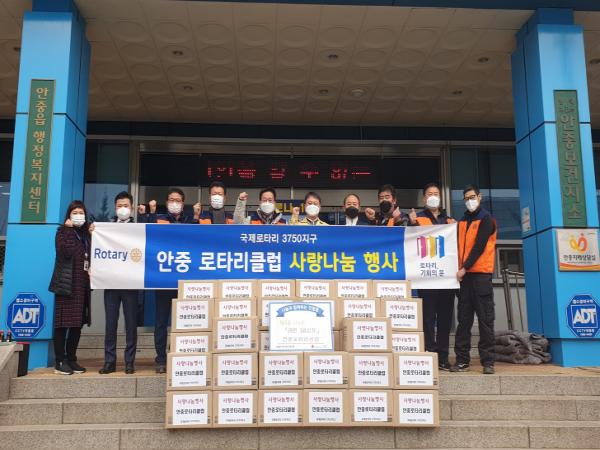 이에 박대장 안중읍장은 “추운 겨울 더욱 힘들어 하는 취약계층을 위해 매년 따뜻한 정성을 전달해주신 안중로타리클럽 회원님들께 감사드리며, 지역사회의 나눔문화가 더욱 확산될 수 있도록 읍에서도 적극 노력하겠다”고 전했다.