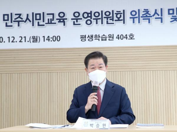 시는 21일 박승원 광명시장, 운영위원회 등 10여명이 참석한 가운데 광명시평생학습원에서 광명시 민주시민교육운영위원회 위촉식과 1차 회의를 개최했다.