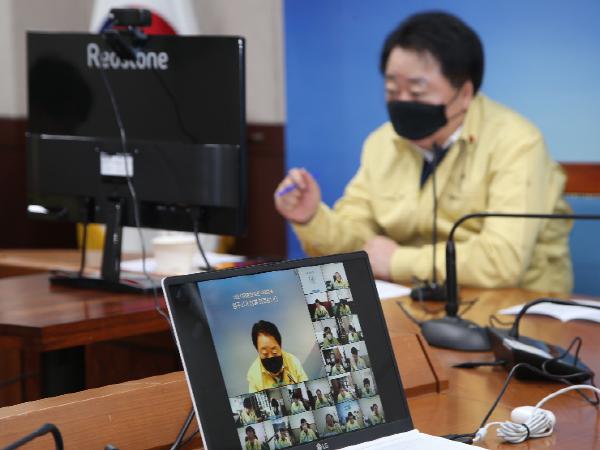 한범덕 청주시장이 21일 오전 8시 40분 온라인 영상회의로 열린 주간업무보고회에서 요양원 관련 코로나19 확산 차단에 행정력을 집중할 것을 강조했다.